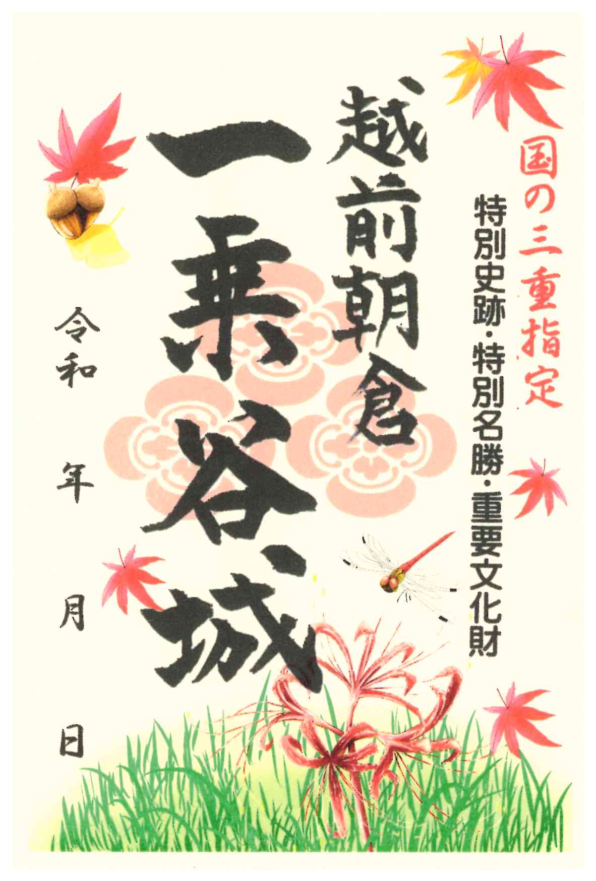 令和7年秋限定の御城印いたします! 赤とんぼとヒガンバナなどを描いた、秋らしい御城印に仕上げました。 ※料金は400円。販売は10月1日~になります。 |